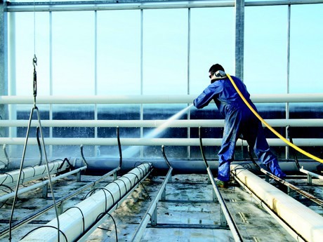 Ronald: "Flusol Forte is een prima product om mee te werken. De Nederlandse teelt kan nou eenmaal niet zonder chemie. Je moet gewoon weten waar je mee bezig bent." Ook Gert-Jan benadrukt het belang van professionaliteit. "Flusol Forte is een zwaar etsend middel. Dit betekent dat het glas weker en ruwer maakt. Daarom moet je het, voor het droog wordt, goed afspoelen. Als je dit zelf met een tuinslangetje gaat doen, is dat vragen om problemen. Met onze pompen verspuiten wij 170 liter per minuut. Kijk, dán gebruik je water. Uiteindelijk wint automatisering alles." Ook bij de andere middelen is goed afspoelen extreem belangrijk. Gert-Jan: "Van andere cleaners is bekend dat overgebleven zouten de teelt zouden kunnen beschadigen."