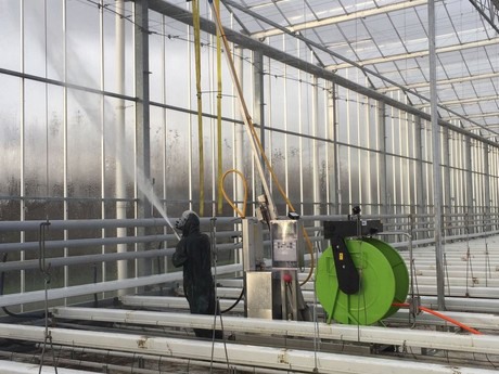 Tholen - Hoe schoner de kas, hoe beter de start van een nieuwe teelt. En daarom wil je de beste cleaner gebruiken die er is. We spraken met Ronald de Vreede van Houweling Horticulture B.V., leverancier van Flusol Forte, Eco Forte en Topcleaner. Ronald: "Flusol Forte is het beste schoonmaakmiddel. Indien je hier vanwege eventuele dampwerking niet mee uit de voeten kunt, kun je schakelen naar één van de andere cleaners." Gert-Jan van Hattem, eigenaar van Sproeibedrijf van Hattem, pleit ook voor het gebruik van Flusol Forte. "Dit is het goedkoopst, werkt het best en is als je het op de goede manier gebruikt, ook nog eens het minst schadelijk voor het milieu."