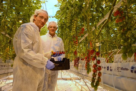 Paul Zantman en Rob Brabander zullen hier telen is nauwe samenspraak met John van der Knaap. John begeleidt vanuit De Ruiter het centrum. Het is altijd even wennen aan een nieuwe kas. Paul is tevreden:"De technische aanloop was goed." Er wordt veel gebruik gemaakt van sensoren in de kas. Gegevens worden hiermee inzichtelijk gemaakt voor de klant. Hoe meer informatie , hoe beter de teelt geoptimaliseerd kan worden.