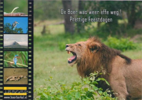 De tekst van de kaarten is al jaren dezelfde. "De boer was weer effe weg! Prettige feestdagen."