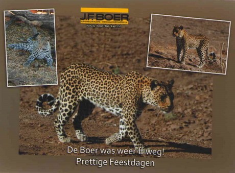 Het is 25 jaar geleden dat Boer Berkel begon met het versturen van zijn kerstkaarten. Op zijn kaarten staat een foto die hij zelf heeft gemaakt. "Ik heb ervoor gefotografeerd in Scandinaviƫ, IJsland en Canada. Sinds twintig jaar doe ik dit in Zuid-Afrika." Het maken van een kerstkaart kost Boer Berkel vier weken. Vorig jaar was het een neushoorn, het jaar ervoor een nijlpaard en dit jaar een luipaard. Boer Berkel: "Je wilt precies het juiste dier vinden. Deze keer moest ik er twee keer voor naar Zuid-Afrika."