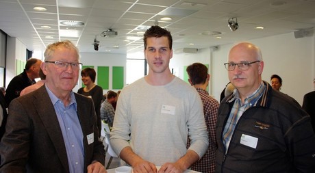 Piet Beltman, Thom van Wesel (Plantenkwekerij Van der Lugt) en Henk Molenaar (Tumoba) aan de koffie.