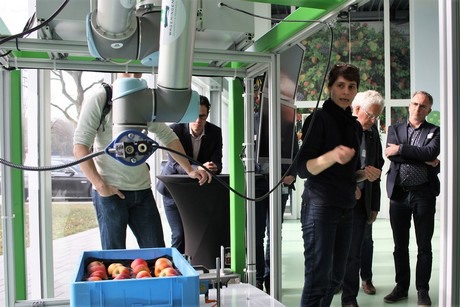 Uitdagingen bleken er voor de robotonderzoekers genoeg te zijn. "Ruimtegebrek tussen de gewassen, onoverzichtelijke en ongestructureerd loshangende bladeren én klimaatomstandigheden in de kas maken het de robot lastig", aldus Hemming die tijdens het ochtendprogramma in totaal drie groepen in zijn lab mocht ontvangen.