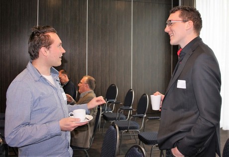 Thijs Ruigrok en Bram Veldhuisen voorafgaand aan de middagsessie glastuinbouw.