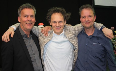Een minireünie van de Zwethkade Zuid: Ad Volkering van Kordes Roses, Ben van der Burg en Maurice van der Knaap van Plantenkwekerij Leo Ammerlaan.