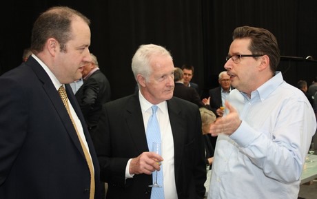 Alfons van de Langenberg, (links) met twee Britse klanten van Leo Ammerlaan: Mark en Alan Pearson.