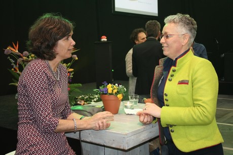 Toos Stoit in gesprek met wethouder van de gemeente Lansingerland Anki van Tatenhove.