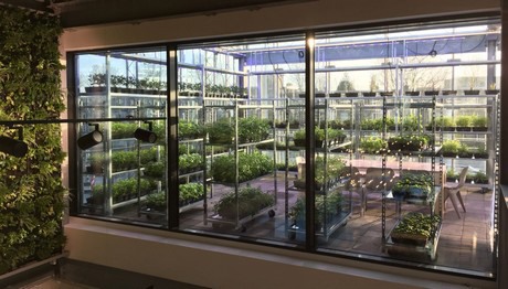 "In de bovenste lagen hebben we kleurinstelbare, dimbare belichting opgehangen, zodat men een beetje kan spelen met de lengte en de bloei van het gewas."