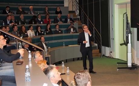 De tweede spreker was Peter Savelberg. Met zijn TristateCity Marketing model presenteert hij Nederland als grote groene wereldstad die kan concurreren met grote andere wereldsteden die met name in China als paddenstoelen uit de grond schieten. Met diverse kaartjes maakt hij inzichtelijk dat we ons in een innovatie hotspot bevinden. Peter daagt de zaal uit groter te denken. "Laten we ophouden Nederland te promoten volgens de landsgrenzen die ooit zijn bedacht."