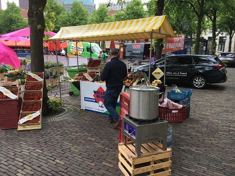Tholen – "We moeten actie blijven voeren tegen de geplande BTW-verhoging", zegt directeur Mark Heemskerk van ADN. Gisteren protesteerden hij en zijn collega's voor de tweede maal op het Binnenhof, samen met groenteman Frans van de Polder die voor de ludieke kant van de actie zorgde. Ze kookten soep voor de bezoekers van het Binnenhof: een tomatensoepje met BTW-verhoging (een glas water) en een soep zonder (heerlijke verse soep).