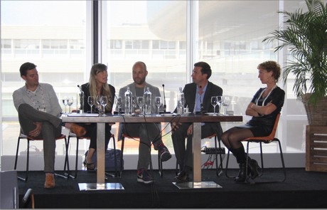 Het panel van links naar rechts: Stijn Baan (Koppert Cress) Charlotte Langerak (Viscon), Hajo van Beijma (SingularityUniversity), Martin Koppert (Koppert Biological Systems), en Marieke de Ruyter de Wildt (The Fork)