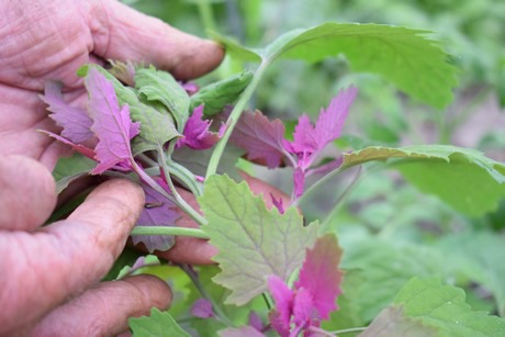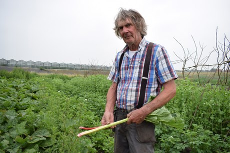 Wat staat er dan zoal in de tuin van Wim? Eigenlijk teveel om op te noemen en afhankelijk van het seizoen. Op dit moment is onder meer verkrijgbaar uit de tuin: Heel veel soorten kruiden waaronder bijzonderheden als Oost Indische Kersblad, Pimpernel, Thulbaghia, Tripmadam en watermunt die in de vijver groeit. Bloemen van bieslook, tuinboon en tijm en bekende, vergeten en bijzondere groenten: ijsbergsla, eikenbladsla, aardpeer spruit en boomspinazie. Wat momenteel populair is? De al genoemde champagne hout rabarber en snijbiet, besluit Wim.