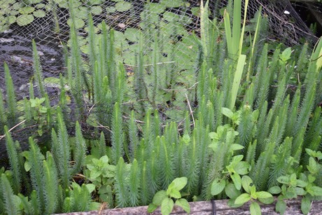 Watermunt groeit in de vijver, waterplanten zijn nodig voor zuurstof voor de vissen