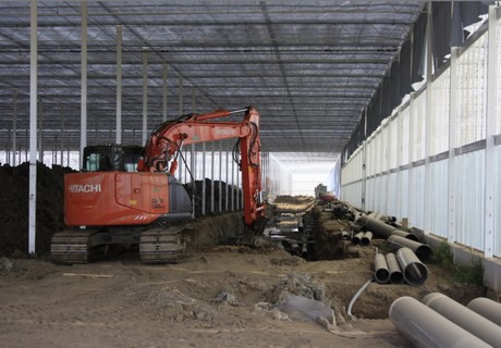 "De bouw begon in januari met de fundatie. In april en mei werd de ondergrondse verwarming aangelegd en in mei werden ook de contouren van de kas zichtbaar. Uiteindelijk lag half juni het glas erop. Ondertussen waren ze in juni met het scherm, loods, ketelhuis en watertechnische ruimte begonnen en is dat inmiddels ook afgerond", somt Erwin op. "Nu, eind juli, zijn we bezig met alle elektra, de waterleidingen, de verwarming en de inrichting van het ketelhuis. Dan volgt het egaliseren en het beton storten. In september begint het al echt ergens op te lijken, want dan komen de teeltgoten, de druppelslangen en worden de verdeelstukken van de verwarming geplaatst. Uiteindelijk moeten de planten in oktober de kas in."