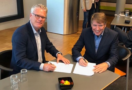 Hein van der Sande en Sjaak van der Tak tekenen voor de samenwerking.