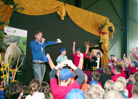 Het was een drukte van jewelste rond het podium waar de asperge kennisquiz werd georganiseerd. De 5 deelnemende scholen aan de asperge kennisquiz hadden zich goed voorbereid en de spanning was af te lezen van de gezichten van de deelnemers. Wie had de zenuwen het meest onder controle en mag zich Aspergekid 2008 noemen?