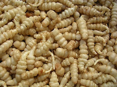 Tholen - Van der Mey Barendrecht heeft sinds een aantal maanden een eigen inkoper op veiling REO in het Belgische Roeselare zitten. En zo wordt er naast de moderne slasoorten, prei, groene kool nog wel eens wat nieuws geprobeerd. "De meest vreemde champignons hebben we de afgelopen weken voorbij zien komen", vertelt Kees van der Mey. "Maar nu kwam er weer iets geks uit de auto. "We hebben goed gekeken, en volgens ons leeft het niet meer. Het schijnt een aardappelachtige te zijn, en in Belgiƫ kennen ze het als 'Crosnes'.