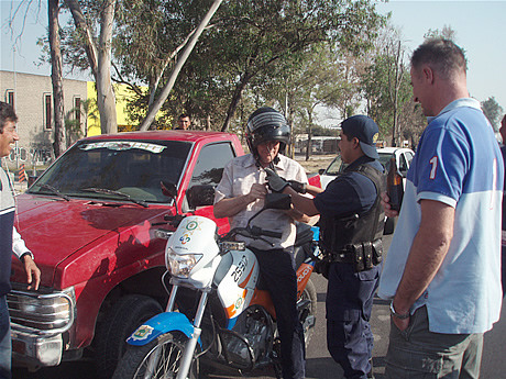De foto laat Jos Boeters zien op de motor van een zeer spontaan meewerkende politieagent. Uiteraard was dit een zeer komisch voorval waar gelukkig veel om gelachen kon worden.