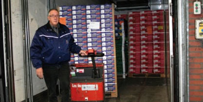 De chauffeurs vertrekken rond 19.00 uur ‘s avonds uit Breda. Collega Henny de Baat zorgt dat de auto geladen is en blijft zodoende binnenslands. Hij werkt van maandag tot en met vrijdag en eens in de drie weken op zaterdag. “Vroeger waren het voornamelijk oud-chauffeurs die het laad- en loswerk verzorgden,nu zijn het ook jonge gasten. In de avonden zijn we tot 10.00 uur ‘s avonds in de weer, maar 's ochtends hebben we zodoende wel meer vrij”, vertelt Henny. De chauffeur trad twintig jaar geleden in dienst bij Mooy Logistics en keerde na een tussentijds uitstapje weer terug op het oude nest. Hij heeft in die tijd voornamelijk het productassortiment zien verschuiven. “Vroeger reden we alleen groenten en fruit, nu transporteren we bijna alles wat naar de supermarkten gaat.”