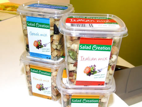 "Als laatste hebben we de croutonmixen 'Franse mix, Griekse mix en Italiaanse mix, in een handige hersluitbare cup, speciaal voor de consumenten die in een handomdraai z’n sla een zonnig sfeertje mee wil geven. Elke mix heeft z’n karakteristieke smaakimpulsen vanuit dat land", aldus Terry.
