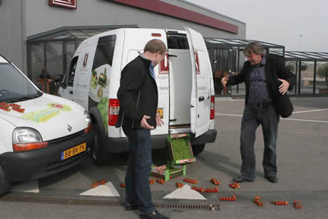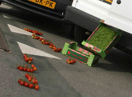 Afgelopen vrijdag 20 maart 2009 vond er een aanrijding plaats bij Koppert Cress. Het was een botsing met gevolgen. De straat lag vol met cressen en tomaten.