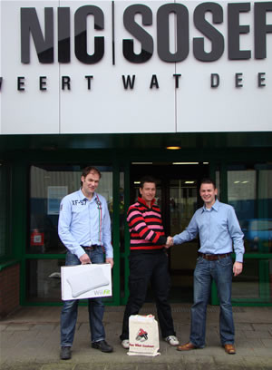 Gisterochtend werden bij Nic Sosef de prijzen door accountmanager Patrick van Paasen uitgereikt. Walter (vertegenwoordiger/relatiebeheerder Nic Sosef in Aalsmeer, Noordoostpolder en IJsselmuiden) nam de Wii in ontvangst en Paul van Gils (vertegenwoordiger/relatiebeheerder Nic Sosef voor Westland en Brabant kreeg een wielertenue uitgereikt.