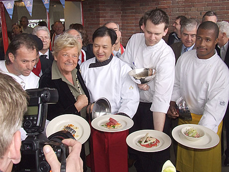 De opening van het seizoen ging namelijk traditioneel gepaard met een Aspergeproeverij. Dit jaar stond het dejeuner in het teken van de vijf continenten. Speciaal voor Dubbel A creƫerden vijf chef-koks aspergegerechten met een Amerikaans, Australisch, Afrikaans, Aziatisch en Europees tintje. Niet alleen Erica Terpstra lustte er pap van!