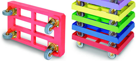 De dolly's zijn eenvoudig stapelbaar en in diverse kleuren leverbaar. Feil kan de dolly voorzien van een bedrijfsnaam en eenvoudig aanpassen aan de wensen van de klant. "Voor elke gebruiksomgeving hebben wij de juiste uitvoering."