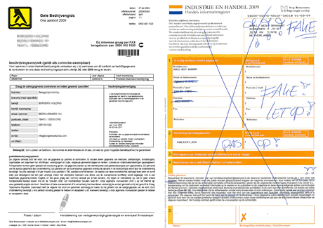 De tweede 'spookfactuur' werd verstuurd voor het "Handels informatieregister Industrie en Handel 2009". Pas na het lezen van de kleine letters aan de zijkant van het formulier blijkt het om een Spaans bedrijf gegaan dat bedrijven twee keer € 997 wil laten betalen voor een vermelding in een Europese bedrijvengids.