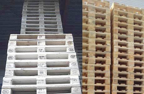 "Ons werk begint bij de inkoop van zowel kapotte als hele pallets.Goede pallets gaan weer het circuit in, kapotte worden gerepareerd. In onzereparatieloods hebben wij acht werktafels waar ervarenvakmensen de diverse soorten pallets voorzien van een nieuwe klos en/ofnieuwe planken", vertelt Ron. "Wanneer pallets niet meer te reparerenzijn, worden ze uit elkaar gehaald en gesloopt door middel van eenspeciale sloopmachine."