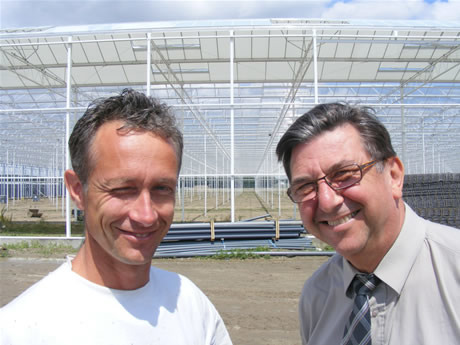 Tholen - Greefa en Kwekerij Westerschelde hebben een overeenkomst gesloten over de nieuwe sorteerinstallatie. "Er is lang nagedacht over de nieuwe machine. Het resultaat mag er wezen", zeggen Wim Zeelenberg van Greefa en paprikateler Piet Reedijk. Er komt een 6-sporige machine met 30 uitgangen. Zes daarvan zijn bestemd voor de 'special packing installatie'. De machine heeft een enorme sorteercapaciteit: 8 tot 9 ton paprika's per uur. Ondanks dat hoge cijfer wordt de machine zo opgebouwd dat er ook nog uitgebreid kan worden.