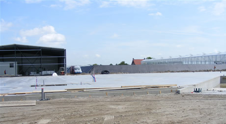 De sorteer- en verpakkingshal in aanbouw