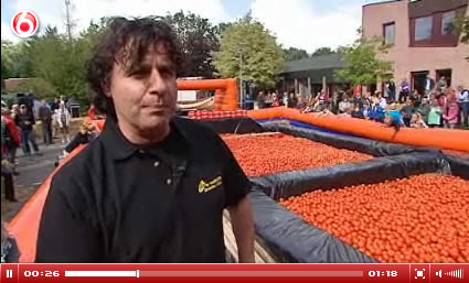 Er lagen 6000 kilo tomaten lagen klaar om gegooid te worden. De 80 enthousiaste deelnemers werd aangeraden een duikbril te dragen. Het was de bedoeling om met de tomaten zoveel mogelijk blikken van de andere partij om te gooien. De deelnemers mochten alleen binnen de vakken gooien en niet naar het publiek. Het tomatengevecht was zo succesvol dat meteen werd besloten volgend jaar weer een Tomatino te houden maar dan met 60 ton tomaten in plaats van 6.