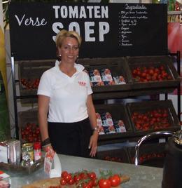 Midden tussen het bloederige geweld van alle vleesexposanten was een oase van natuurlijke smaak een prachtig staaltje van innovatie en doorzettingsvermogen te vinden: Puur tomaat. Een initiatief van 5 tomatenkwekers van de telersvereniging Prominent. De heren konden nergens in Nederland tomatensoep van echte Nederlandse tomaten vinden en dus gingen zij maar zelf aan de gang. Intussen lijkt het concept aan te slaan en weet de soep zijn weg te vinden naar steeds meer afnemers. Het gezicht van de Puur-tomaat, Bernadette van den Berg, deelde met een ongekend enthousiasme de ambachtelijke en regionale soep uit aan de bezoekers. www.puurtomaat.nl