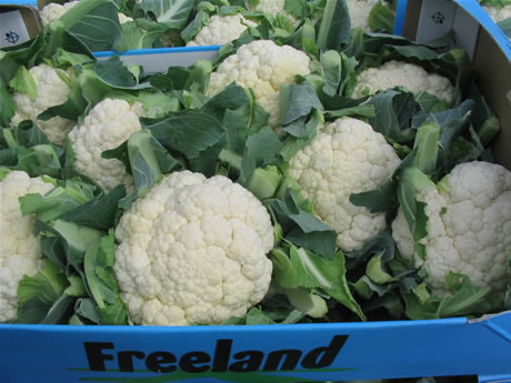 Deze week werd de bloemkool (6 stuks in een doos) verkocht voor maar liefst 7,50 euro. Maar deze week was de bloemkool bij zowat alle supermarkten in de actie. Veel zal in de voorverkoop verkocht zijn en de tuinders zullen in veel gevallen helaas niet de marktprijs hebben gekregen."