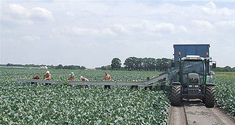 Tholen - Het Nederlandse broccoliseizoen loopt nog zo'n twee weken door, maar moet inmiddels concurreren met de broccoli uit Spanje. "Tot halverwege november hebben we nog vaste leveringen aan de Nederlandse supermarkten, maar op de vrije handel wordt al volop Spaanse broccoli aangeboden", vertelt Stan Hage uit Steenbergen, met een areaal van 250 hectare verreweg de grootste broccoliteler van Nederland. "Hoe lang we nog doorgaan, is afhankelijk van de Spaanse aanvoer.