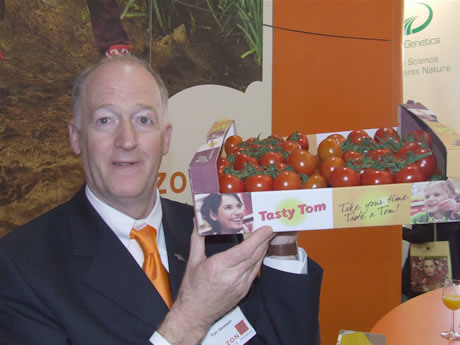 Tholen - De presentatie van Ton Janssen tijdens de kick-off van de tomatencampagne van Enza Zaden had de veelzeggende titel 'Heb je tomaten op je ogen?'. Volgens de voorzitter van telersvereniging Tasty Tom dreigen veel bedrijven in de tomatensector bedrijfsblind te worden. Daarom daagde Janssen zijn collega-tomatentelers uit voor een wedstrijdje tomatenpromotie. "Tasty Tom investeert omgerekend 5.000 euro per hectare aan promotie. Van elke euro die een consument aan ons product uitgeeft, gaat 1% naarde promotie van Tasty Tom. Binnen de gehele tomatensector is datpercentage 0,005%."