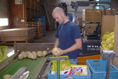 Tholen - De afzet van knolselderij verloopt erg rustig. De verkopen aan de industrie liggen volgens Lies den Ouden van Liedo uit Roosendaal zelfs nagenoeg stil. Bij de boer wordt 12 cent betaald en de "verkoop in de zak" bedraagt 25 cent. "Te weinig als je het kostenplaatje ziet", concludeert Lies. "Het is een magere kerst, vorig jaar was het knap drukker."