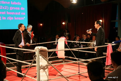 Stroeken wierp hier tegenin dat als alle producten uitwisselbaar zijn er geen keuzevrijheid mogelijk is. "We hebben een maatschappelijk belang om meer groenten en fruit te eten en als de promotie privaat niet werkt, moet je dat collectief aanpakken." Overigens waren beide debaters er over eens dat de sector "veel en veel en veel te weinig" met de consument bezig is.