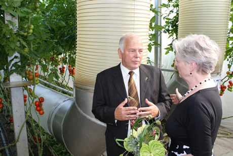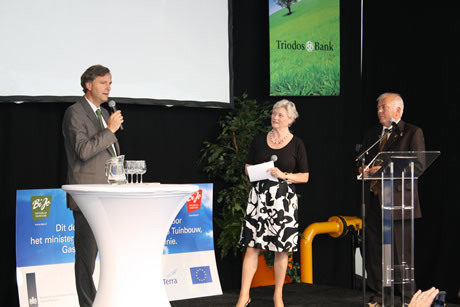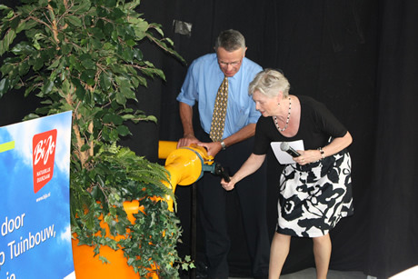 Tholen – Een primeur voor BiJo: het bedrijf is sinds gisteren als eerste tuinbouwbedrijf in Nederland overgegaan naar een volledig duurzame en biologische teelt. Het demoproject voor duurzame energie van het biologische glastuinbouwbedrijf is gesubsidieerd door onder meer het Ministerie van landbouw en de Triodos Bank. Demissionair Minister van der Hoeven heeft de officiële handeling verricht waarmee BiJo naast biologisch ook duurzaam is gaan telen: ze heeft de gaskraan dichtgedraaid. Bijo teelt nu in twee nieuwe kassen op tien hectare volledig duurzaam. Aad Jonker runt het familiebedrijf samen met twee van zijn kinderen, zoon Arno en dochter Elma. De feestelijke bijeenkomst vond te midden van de kassen plaats, daar draaide het immers om.Kijk hier voor de volledige fotoreportage