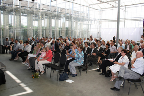 Jan Moerdijk, die het bedrijf in de afgelopen jaren van advies heeft voorzien, leidde alles in goede banen en vroeg allereerst Aad Jonker op het podium. Hij heette alle genodigden van harte welkom en bedankte iedereen die dit project mede mogelijk heeft gemaakt van harte. Onder meer Verbakel-Bomkas, Jan Moerdijk en Aquaned werden genoemd. Hij maakte alvast excuses aan iedereen die hij was vergeten. De gesloten kas waarin naast biologisch ook duurzaam geteeld wordt, had zonder hun hulp nooit tot stand kunnen komen. Hij hield het kort, maar krachtig en gaf onder meer aan erg blij te zijn met het feit dat de duurzame teelt nu echt in beweging kan worden gezet.