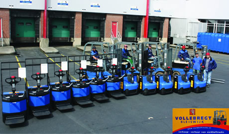 ERP heeft onlangs het wagenpark volledig vernieuwd. Op de foto de nieuwe heftrucks bij ERP Poeldijk.