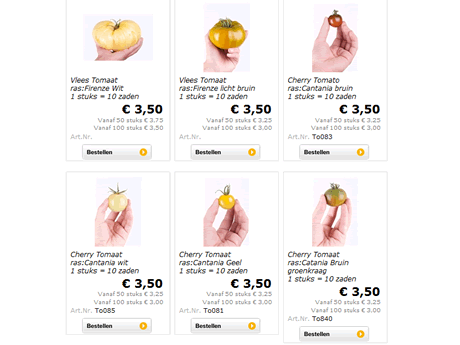 "Onze webshop moet je zien als een etalage voor de professionele teler, maar de verkoop via de webshop zal met name via de amateurtelers verlopen. Voor de verkoop van meer dan duizend zaden, is de webshop namelijk niet bedoeld. Die geïnteresseerden kunnen op de website een speciale offerte opvragen", vertelt Jan. Hij heeft volop vertrouwen in de webshop. "De eerste zaden zijn al besteld, vanmorgen nog aan iemand uit Californië die interesse had in baby-paprikaatjes."