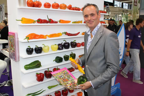"Bij de grote bedrijven zie je de kleine producten na bedrijfsovernames nog wel eens tussen wal en schip vallen", vertelde Wim. En juist in die kleine rassen is Westland Seeds een grote jongen. Op de Horti Fair toonde het zaadveredelingsbedrijf voor het eerst haar producten. Paprika's en pepers in alle kleuren en maten en daarnaast worden de eerste stappen gezet in het tomatenportfolio.