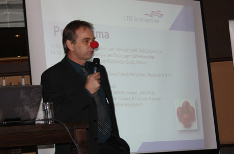 Mark Hanemaaijer (Account Group Manager Retail bij Coca Cola) en evenals de vorige spreker Westlander - vertelde over het MVO-beleid van Coca Cola en hoe dit in de communicatie wordt toegepast. Coca Cola speelt hier in een voortrekkersrol. Zo besloot het bedrijf vorig jaar alle koelers in Nederland van deuren te voorzien. Op korte termijn kost dit meer geld, maar Coca Cola verwacht op langere termijn hiermee wel een voorkeur te houden bij retailers ten opzichte van de concurrentie. Volgens Hanemaaijer valt er voor de tuinbouw veel meer te communiceren op MVO-gebied. Cor van der Kaaij was wel voor een dealtje in. "Als jullie bij Coca Cola nou eens onze tomaten gaan promoten, dan hebben jullie een goed imago en raken wij onze tomaten beter kwijt!"