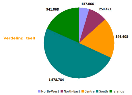 Het Zuiden van Italië was met 1.478.784 ton in 2010 verreweg het grootste paprikaproducerende gebied. In centraal-Italië werden er 546.403 ton paprika's geproduceerd, op de eilanden - met name Sardinië - 541.068 ton en in het noordoosten 258.421 ton. In het noordwesten van Italië worden de minste paprika's geteeld.