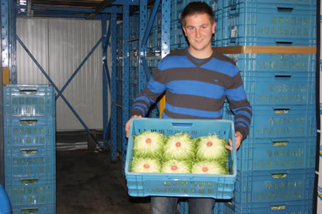 Nico Keirsmaekers met de krulsla die wordt geleverd door een 'vaste' teler