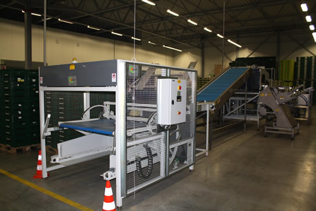 In het gloednieuwe pand in Venlo zijn het afgelopen importseizoen al heel wat pruimen verpakt. De basislijn van de machine is een standaardlijn van Sorma, dat haar sporen reeds verdiend heeft in de verpakkingsmachines van steenfruit. Met de machine is het zelfs mogelijk om tegelijkertijd de pruimen te 'dekselen' als te verpakken in zakken. De machine heeft een unieke, viervoudige uitvoer, die het in staat stelt om een capaciteit van maar liefst tachtig verpakkingen per minuut te halen.