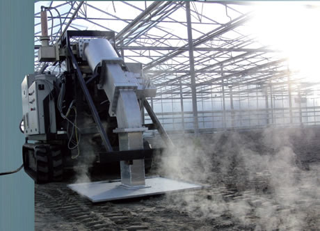 Koppert Machines is nu vijf jaar bezig met het ontwikkelen van de Agritron. De Agritron is een machine speciaal ontwikkeld voor het ontsmetten van grond, waarbij door middel van een magnetron een antenne over de grond wordt getrokken. De elektromagnetische golven uit de antenne brengen in de grond moleculen tot leven. Deze gaan bewegen en daarbij komt warmte vrij. Plaaginsecten en schimmels koken dood en de grond wordt gesteriliseerd.
