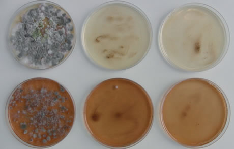 Samples op kweek van onbehandelde (links) en met Agritron behandelde grond